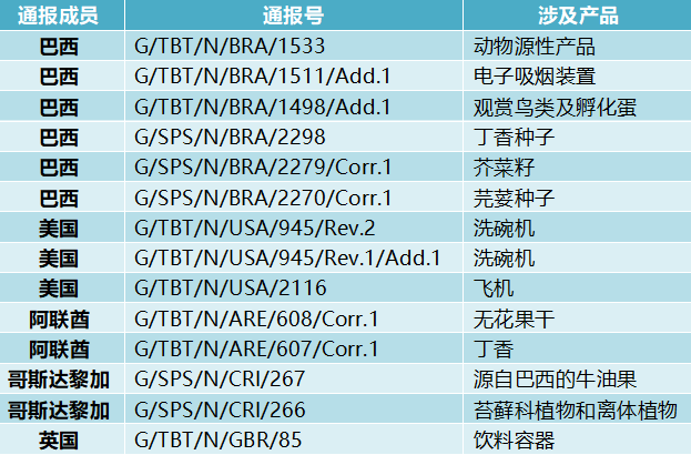 WTO技贸措施通报速递(4月24日)